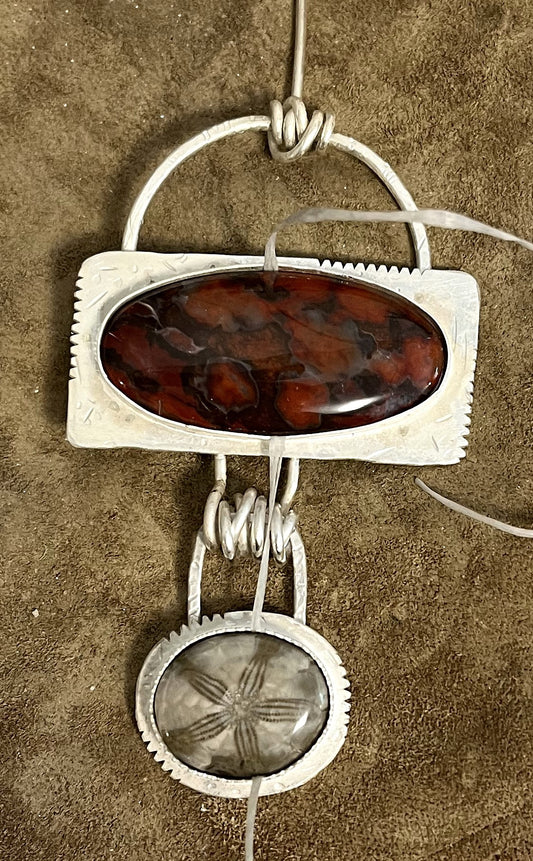 • Necklace - Poppy Jasper, Sand Dollar Fossil