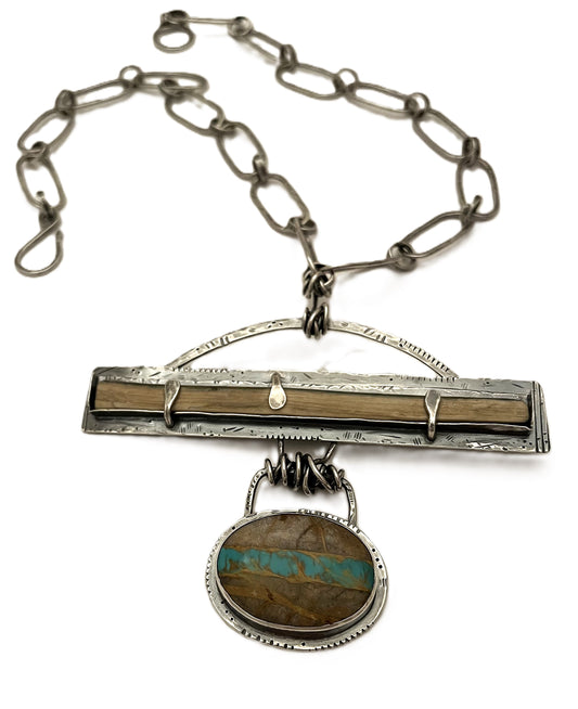 Necklace - Royston Ribbon Turq., Mammoth Fossil