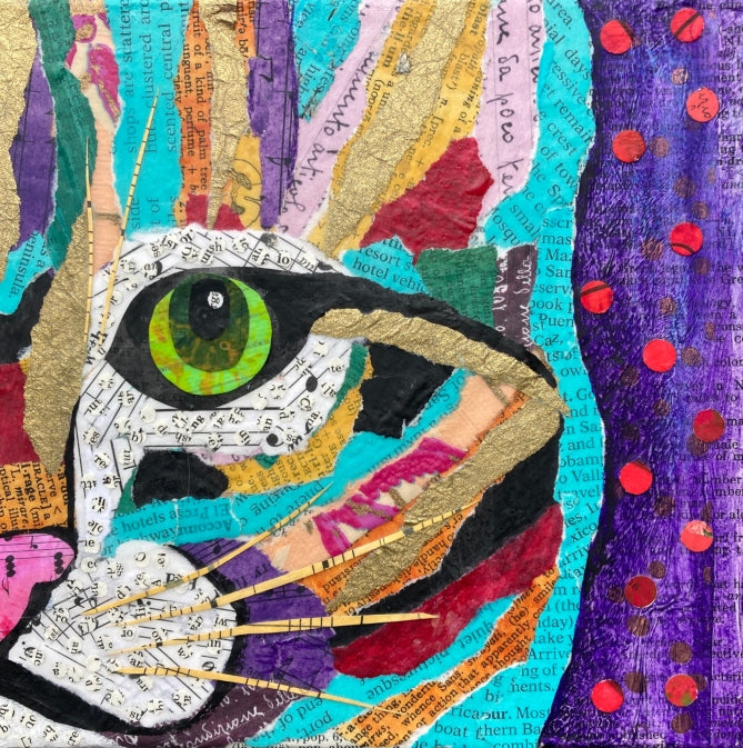 Whimsical and colorful mixed-media, acrylic collage -- made to be purchased as a diptych (one of 2).