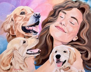 Oil on gallery wrapped canvas. Pure delight and pleasure in the unconditional love of a golden retriever.